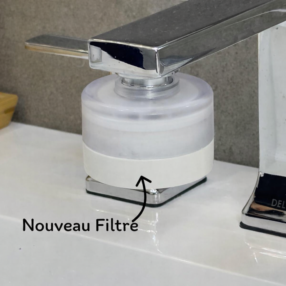 Nous recommandons de changer le filtre dans un délai de 2 mois, ou dès que vous constatez une baisse de la pression de l’eau, selon ce qui survient en premier.