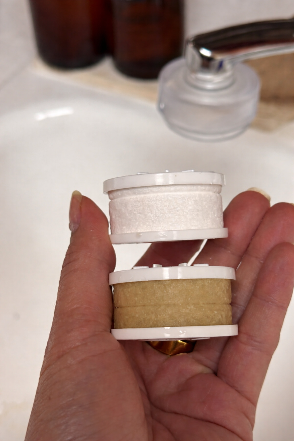 En parallèle, l’eau réagit instantanément avec de la vitamine C de qualité alimentaire pure à 99,5 %, qui neutralise le chlore et les chloramines.