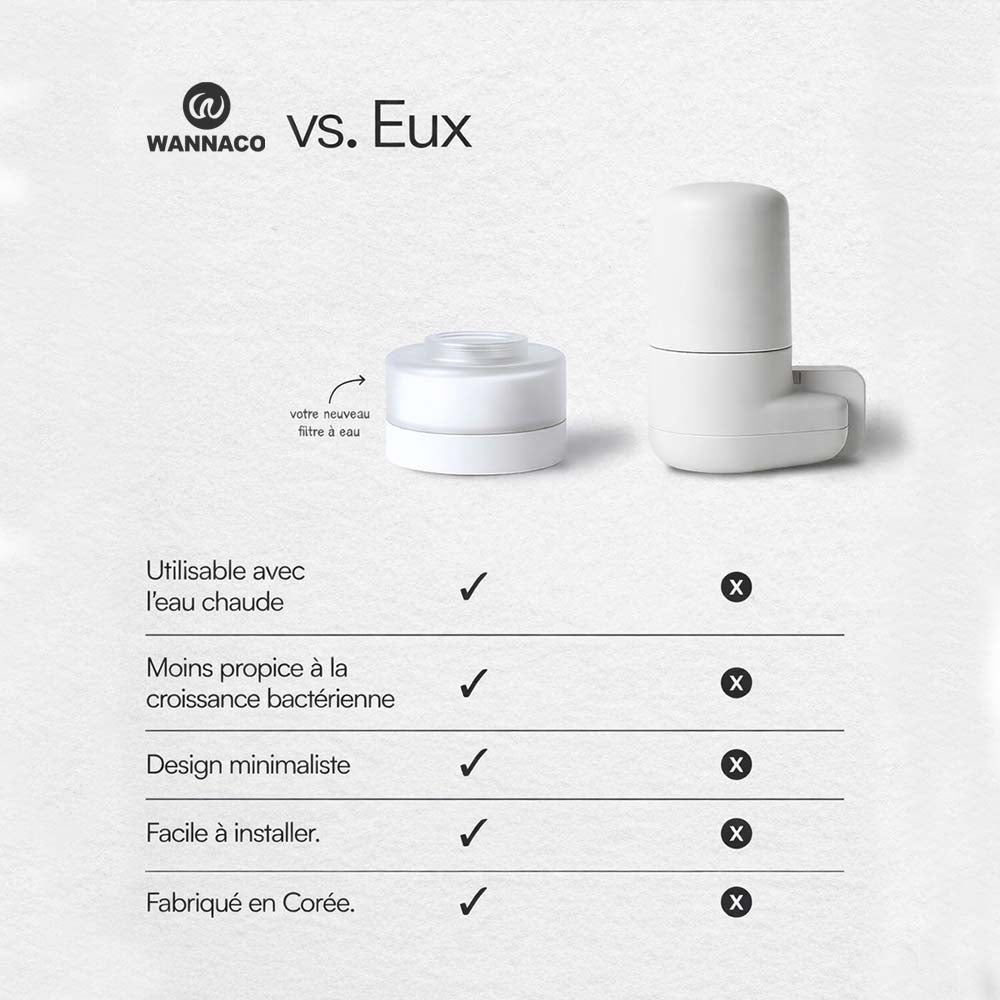 Le filtre WANNACO PureSkin n’est pas conçu pour l’eau de boisson. Il est destiné au lavage du visage et au brossage des dents.